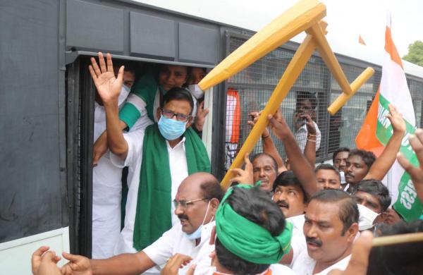 இந்நிலையில் தேனியில் உள்ள தனியார் விடுதியில் தங்கியிருந்த கே.எஸ்.அழகிரி, வேளாண்மை சட்டத்திற்கு எதிரான போரட்டத்தை சீர்குலைப்பதாக காவல் துறைக்கு கண்டனம் தெரிவித்தார். பின்னர், விடுதியிருந்து நேருசிலை வரை ஊர்வலமாகச் செல்ல முயன்ற கே.எஸ்.அழகிரி, காங்கிரஸ் மாநில செயல் தலைவர் மயூரா ஜெயக்குமார், இளைஞர் காங்கிரஸ் மாநிலத் தலைவர் ஹசன் ஆருண், காங்கிரஸ் மாவட்டத் தலைவர் முருகேசன் உள்ளிட்டோரை, தேனி காவல் துணைக் கண்காணிப்பாளர் முத்துராஜ் தலைமையில் காவலர்கள், விடுதி வாயில் முன்பு சாலையில் தடுத்து நிறுத்தி கைது செய்தனர்.