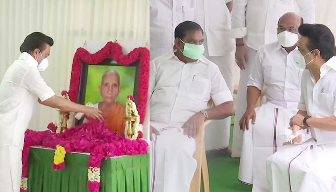 முன்னதாக, அமைச்சர்கள், அதிமுக நிர்வாகிகள், முக்கிய பிரமுகர்கள் என பலரும் முதலமைச்சர் இல்லத்திற்கு சென்று அவரது தாயார் படத்திற்கு அஞ்சலி செலுத்தினர்.