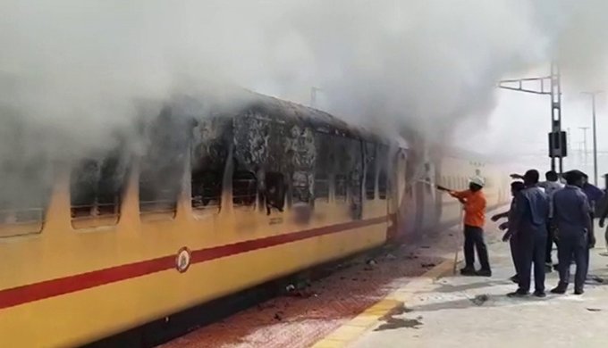 தெலங்கானா மாநிலத்தில் நின்று கொண்டிருந்த ரயிலில் திடீர் தீ விபத்து