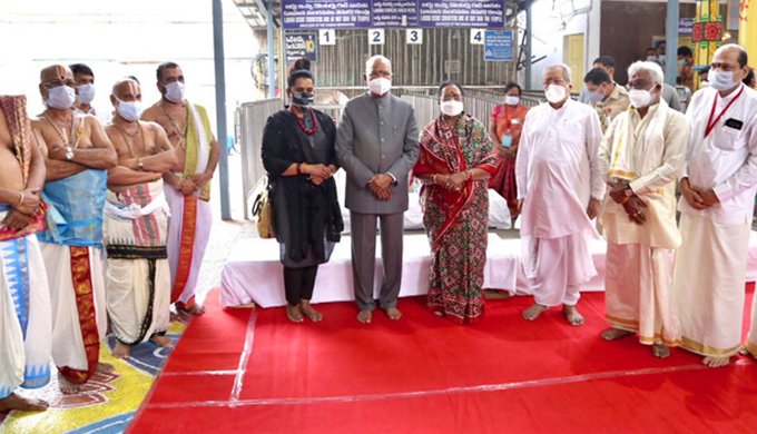 குடியரசுத் தலைவர் ராம்நாத் கோவிந்த் தனது துணைவியாருடன் திருப்பதி ஏழுமலையான் கோயில் மற்றும் திருச்சானூர் பத்மாவதி தாயார் கோயிலில் சுவாமி தரிசனம் செய்தார். திருச்சானூர் பத்மாவதி தாயார் கோயிலில் குடியரசுத் தலைவருக்கு பூரண கும்ப மரியாதை அளிக்கப்பட்டது.