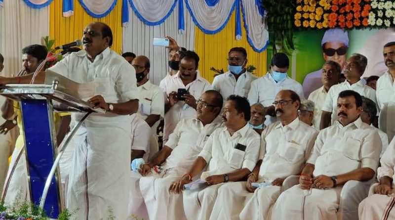 தொடர்ந்து பேசிய சுற்றுலாத்துறை அமைச்சர் வெல்லமண்டி நடராஜன், ‘சில நடிகர்கள் பேசிட்டு இருக்காங்க. ஜெயலலிதா இல்லை என்று ஒருத்தரு கட்சி ஆரம்பிக்கிறாராம்(ரஜினி) ). இவர்கள் எல்லோரும் எம்.ஜி.ஆர் ஆட்சியைத் தருவோம் என்கிறார்கள். இவர்கள் யாரும் கருணாநிதி ஆட்சியைத் தருவோம் என்று சொல்வதில்லை. இந்த கட்சியில்தான் விவசாயி முதலமைச்சாராக முடியும். டீக்கடை வைத்திருந்தவர் துணைமுதலமைச்சராகவும் சாதாரண தொண்டன் அமைச்சராகவும் முடியும்’ என்று தெரிவித்தார்….