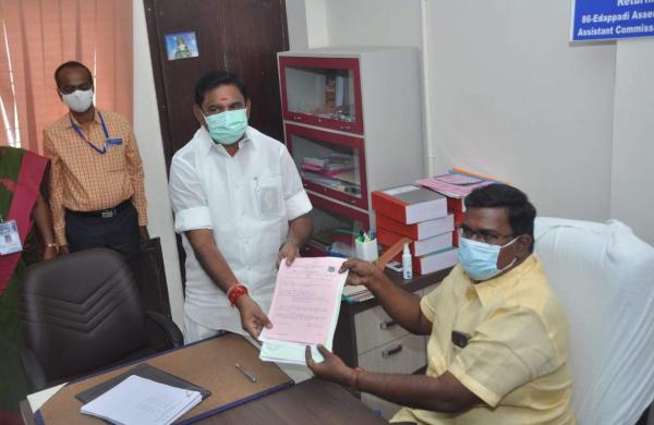 தமிழக முதல்வர் எடப்பாடி கே. பழனிசாமி, எடப்பாடி வட்டாட்சியர் அலுவலகத்தில் வேட்புமனு தாக்கல் செய்தார்.
