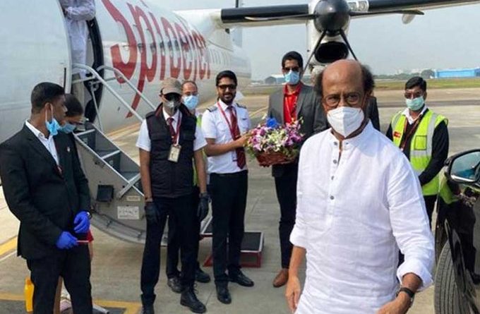 இயக்குனர் சிவா இயக்கத்தில் ரஜினிகாந்த் நடித்து வரும் அண்ணாத்த திரைப்படத்தின் படப்பிடிப்பு பணிகள் ஐதராபாத்தில் உள்ள ராமோஜி பிலிம் சிட்டியில் நடைபெற்று வந்தது. படப்பிடிப்பு முடிவடந்ததை அடுத்து ஐதராபாத்திலிருந்து தனி விமானம் மூலம் சென்னை விமான நிலையம் வந்தடைந்த ரஜினிகாந்த், பின்னர் காரில் போயஸ் கார்டனில் உள்ள அவரது இல்லத்திற்கு புறப்பட்டுச் சென்றார்.