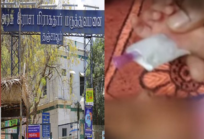அரசு மருத்துவமனையில் செவிலியர் ஒருவரின் கவனக்குறைவால் பிறந்த 15 நாட்களே ஆனா குழந்தையின் கட்டை விரல் துண்டாக்கப்பட்ட சம்பவம் தஞ்சையில் பெரும் பரபரப்பை ஏற்படுத்தியுள்ளது.