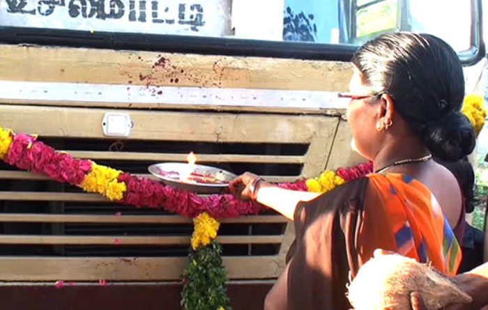 பேருந்துக்கு ஆரத்தி எடுத்து வரவேற்ற மக்கள்… எதற்கு தெரியுமா?