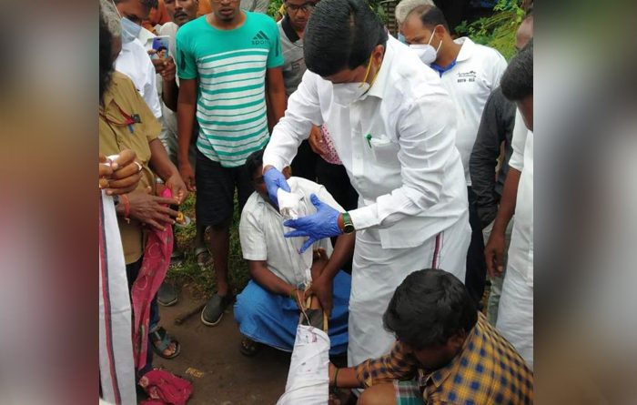 விபத்தில் சிக்கிய இளைஞருக்கு சட்டமன்ற உறுப்பினரும் டாக்டருமான லட்சுமணன் வேட்டியைக் கிழித்து கட்டுப்போட்டு முதலுதவி செய்துள்ளார். சட்டமன்ற உறுப்பினரின் இந்த செயலுக்கு பலரும் பாராட்டு தெரிவித்து வருகின்றனர்.