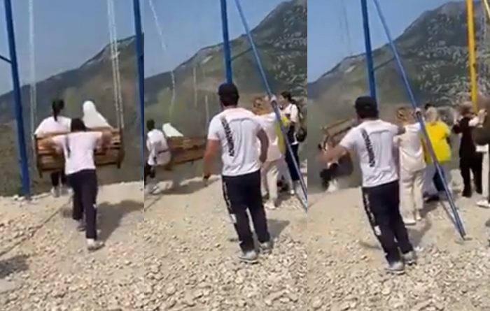 ஊஞ்சல் சென்று வரும் ஒவ்வொரு முறையும், அதன் வேகத்தை அவர் அதிகப்படுத்தினார். ஒரு கட்டத்தில், அருகில் ஊஞ்சலின் செயின் அறுந்து, நிலை தடுமாறி அந்த பெண்கள் கீழே விழுந்தனர். இதைப்பார்த்த அங்கிருந்தவர்கள் அதிர்ச்சியில் உறைந்து போயினர். இரண்டு பெண்களும், குன்றின் விளம்பில் ஒரு குறுகிய டெக்கிங் மேடையில் விழுந்தனர். பின்னர் சிறு காயங்களுடன் அந்த பெண்கள் மீட்கப்பட்டனர். 6300 அடி உயரம் கொண்ட பள்ளத்தாக்கில் இரண்டு பெண்கள் விழுந்த வீடியோ தற்போது வைரலாகி வருகிறது.
