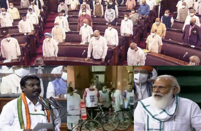 மாநிலங்களவை தொடங்கிய பின், உயிரிழந்த எம்.பிக்கள் மற்றும் பிரபலங்களுக்கு இரங்கல் தெரிவிக்கப்பட்டது. இதனையடுத்து ஒரு மணி நேரம் ஒத்திவைக்கப்பட்ட மாநிலங்களவை மீண்டும் தொடங்கியபோது, அவைத் தலைவர் வெங்கையா நாயுடுவின் இருக்கையை எதிர்க்கட்சியினர் முற்றுகையிட்டனர்.அப்போது, நாட்டின் பல்வேறு பிரச்னைகள் குறித்தும் கடும் அமளியில் ஈடுபட்டனர்.