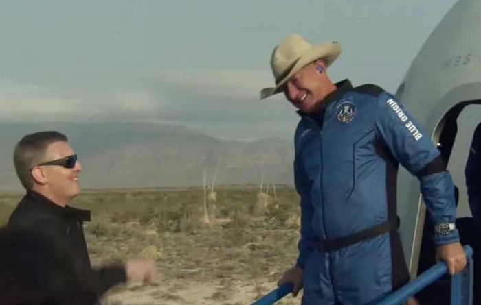 ஜெஃப் பெசாஸ் வெற்றிகரமாக தனது விண்வெளி பயணத்தை முடித்துள்ளார். 1969 ஆம் ஆண்டு நிலாவில், நீல் ஆம்ஸ்ட்ராங் காலடி வைத்த இதே நாளில் அமேசான் நிறுவனர் ஜெஃப் பெசாஸ் உள்பட 4 பேர் விண்வெளிக்கு சென்று திரும்பியுள்ளனர்.