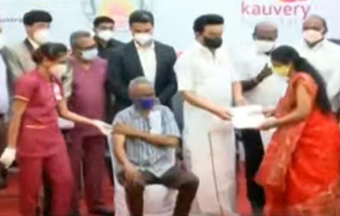 கொரோனா தடுப்பூசி சுமார் 600 ரூபாய் உள்ள நிலையில், அவர்கள் பொதுமக்களுக்கு இலவசமாக வழங்கி வருகின்றனர். இந்த நிலையில் சென்னை காவேரி மருத்துவமனையில், இலவச கொரோனா தடுப்பூசி திட்த்தை முதலமைச்சர் மு.க.ஸ்டாலின் துவக்கி வைத்தார்.