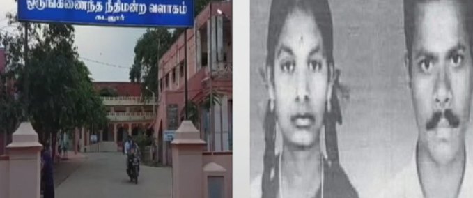 கடலூரில் கடந்த 2003ல் கலப்பு திருமணம் செய்த தம்பதிகளை கொடூரமாக கொலை செய்த வழக்கில் குற்றவாளிகளில் ஒருவருக்கு தூக்கு தண்டனையும், காவலர்கள் உட்பட 12 பேருக்கு ஆயுள் தண்டனை விதித்து நிதிமன்றம் தீர்ப்பளித்துள்ளது.