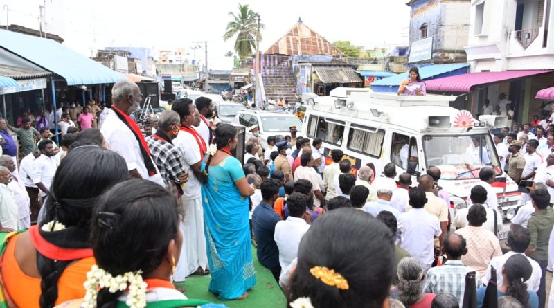 நகர்ப்புற உள்ளாட்சி தேர்தலில் தூத்துக்குடி மாநகராட்சியில் போட்டியிடும் மதச்சார்பற்ற முற்போக்கு கூட்டணியின் வெற்றி வேட்பாளர்களை ஆதரித்து ஸ்பிக் நகர் பகுதி சவேரியார்புரத்திலும், ஏரல் பேரூராட்சி காந்தி சிலை, சாயர்புரம் பேரூராட்சி சுப்பிரமணியபுரம், பெருங்குளம் பேரூராட்சி பண்டாரவிளை, திருவைகுண்டம் பேரூராட்சி மேடப்பிள்ளையார் கோவில் அருகில், ஆழ்வார்திருநகரி பேரூராட்சி காமராஜர் சிலை, நாசரேத் பேரூராட்சி கே.வி.கே.சாமி சிலை அருகில், சாத்தான்குளம் பேரூராட்சி காமராஜர் சிலை, உடன்குடி பேரூராட்சி பாரதி திடல், திருச்செந்தூர் நகரம் வ.உ.சி திடல், ஆறுமுகநேரி மெயின் பஜார், ஆத்தூர் பேரூராட்சி பேருந்து நிலையம் அருகில் உள்ளிட்ட பகுதிகளில் இன்று (13/02/2022) ஞாயிற்றுக்கிழமை, பிரச்சாரம் மேற்கொண்டார் கனிமொழி எம்பி