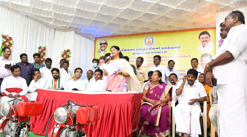 இந்நிகழ்ச்சியின்போது, இலங்கை கடற்படையினரால் சிறைபிடிக்கப்பட்ட 5 மீனவர்களுக்கு அரசு சார்பில் தலா 1.50 இலட்சம் ரூபாய் மற்றும் படகுகளுக்கு பொறுத்தக்கூடிய மோட்டார் இயந்திரத்தை மானிய விலையில் பெறக்கூடிய பயனாளிகள் இருவருக்கு வழங்கினார் கனிமொழி கருணாநிதி எம்பி