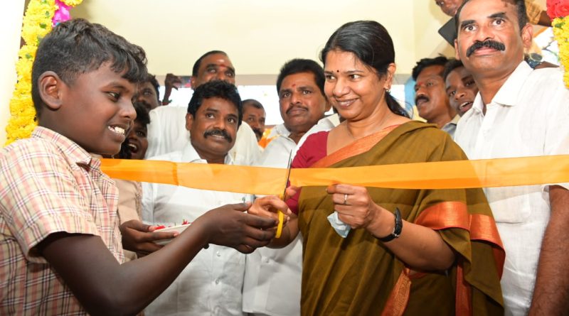 தூத்துக்குடி மாவட்டம், மீனாட்சிப்பட்டி ஊராட்சி ஒன்றிய நடுநிலைப்பள்ளியில் ரூபாய் 35.47 இலட்சம் மதிப்பீட்டில் புதிதாக கட்டப்பட்டுள்ள பள்ளி வகுப்பறை மற்றும் உணவுக்கூட கட்டிடத்தை பயன்பாட்டிற்கு இன்று திறந்து வைத்தார் கனிமொழி எம்பி
