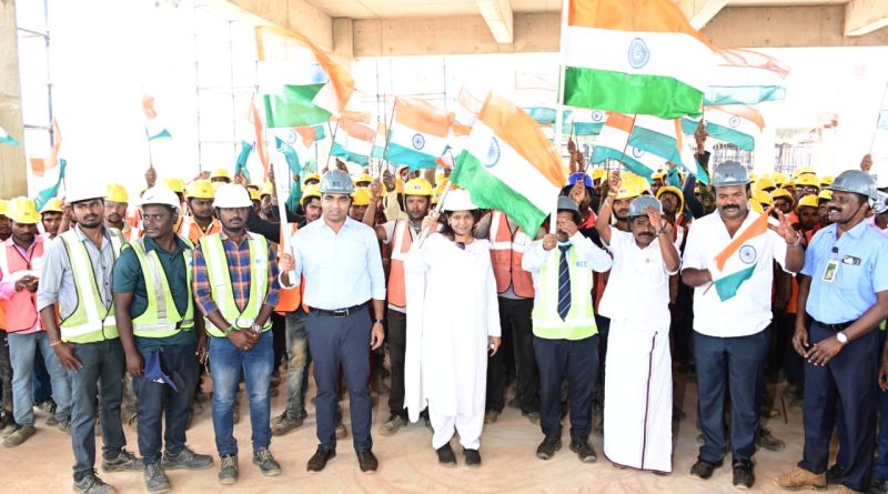 இதனைத் தொடர்ந்து 75-வது சுதந்திர தினத்தை முன்னிட்டு கையில் தேசியக்கொடி ஏந்தி கேக் வெட்டி தொழிலாளிகளுக்கு வழங்கினார்.