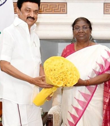 இந்நிலையில், குடியரசு தலைவர் திரெளபதி முர்முவை நேரில் சந்தித்து தமிழக முதல்வர் மு.க.ஸ்டாலின் வாழ்த்து தெரிவித்தார். நாட்டின் 15ஆவது குடியரசுத் தலைவராக தேசிய ஜனநாயக கூட்டணியின் வேட்பாளர் திரெளபதி முர்மு கடந்த ஜூலை மாதம் பொறுப்பேற்றுக் கொண்டார். இந்த நிலையில் டெல்லி சென்றுள்ள முதலமைச்சர் மு.க.ஸ்டாலின், குடியரசுத் தலைவர் மாளிகையில் திரெளபதி முர்முவை நேரில் சந்தித்து பூங்கொத்து கொடுத்து வாழ்த்து தெரிவித்தார்.இந்த சந்திப்பின்போது, திமுக மக்களவைத் தலைவர் டி.ஆர்.பாலு, தலைமைச் செயலாளர் வெ.இறையன்பு உள்ளிட்டோர் உடனிருந்தனர்.