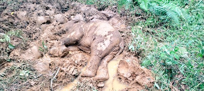 சேற்றில் சிக்கி ஆண் குட்டி யானை உயிரிழப்பு..!
