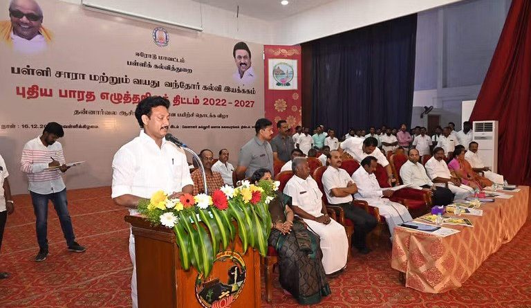 நடப்பாண்டு தமிழகம் முழுவதும் புதிய பாரத எழுத்தறிவுத் திட்டத்தின் கீழ் 4.8 லட்சம் பேருக்கு எழுத்தறிவு கற்பிக்க இலக்கு நிர்ணயிக்கப்பட்டுள்ளது. அதில் ஈரோடு மாவட்டத்தின் இலக்கு 23,598. கடந்த ஆண்டு 3.10 லட்சம் பேருக்கு திட்டம் பயன் தந்தது. இலக்கை விஞ்சி 5 லட்சம் பேர் வரை இத்திட்டத்தில் பயன் அடைவார்கள்.