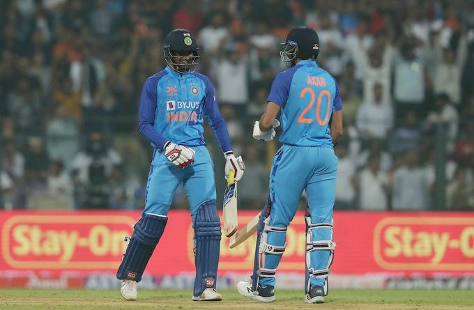 டிஆர்எஸ் முறையில் அப்பீல் செய்தும் பலன் இல்லை. இதையடுத்து களம் புகுந்த துணை கேப்டன் சூர்யகுமார் யாதவ் 7 ரன்னில் ஆட்டம் இழந்தார். பவர் பிளே முடிவில் இந்திய அணி 2 விக்கெட் இழப்புக்கு 41 ரன்கள் அடித்திருந்தது. 3வது விக்கெட்டுக்கு களம் இறங்கிய சஞ்சு சாம்சன் தனக்கு கிடைத்த வாய்ப்பை பயன்படுத்த தவறினார். அவர் 5 ரன்னில் அவுட் ஆனார். இதையடுத்து அணியின் கேப்டன் பாண்ட்யா இஷன் கிஷனுடன் ஜோடி சேர்ந்தார்.