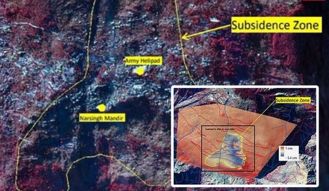 இந்திய விண்வெளி ஆய்வு மையமான இஸ்ரோவின் என்ஆர்எஸ்சி மையம் வெளியிட்டிருக்கும் செயற்கைக்கோள் புகைப்படத்தில் ஜோஷிமட் மற்றும் அதனை சுற்றியிருக்கும் ஒட்டுமொத்த நகரமுமே புதைபடக்கூடும் என்று தெரிவிக்கப்பட்டுள்ளது.
