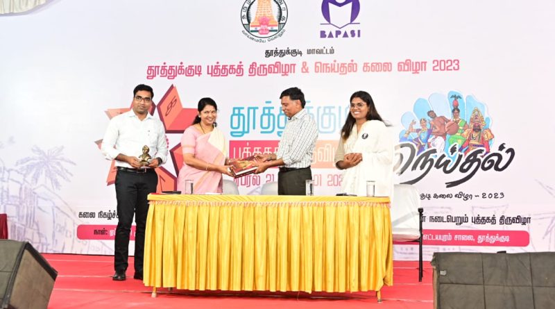 தூத்துக்குடி – எட்டயபுரம் சாலை, சங்கரப்பேரி பிரிவு சாலை அருகில் உள்ள மைதானத்தில் தூத்துக்குடி மாவட்ட நிர்வாகம் சார்பில், நேற்று 21/04/2023 கோலாகலமாக தொடங்கி‌ நடைபெற்றுவரும் 4-வது புத்தக திருவிழாவில் “வரலாற்றில் தூத்துக்குடி” என்ற‌ தலைப்பில் முனைவர் ராஜேந்திரன் (இந்திய ஆட்சிப்பணி பணிநிறைவு) “புத்தகத்தோடு‌ உரையாடுவோம் – சமத்துவமாய்‌ உரையாடுவோம்‌” என்ற தலைப்பில் கிரேஸ் பானு “வாக்கினிலே இனிமை வேண்டும்” என்ற தலைப்பில் திண்டுக்கல் ஐ.லியோனி ஆகியோர் உரையாற்றினார்கள். இந்நிகழ்ச்சியில்,கனிமொழி எம்பி அவர்கள் கலந்துகொண்டு சிறப்பு‌‌ விருந்தினர்களுக்கு நினைவு பரிசை வழங்கினார்!