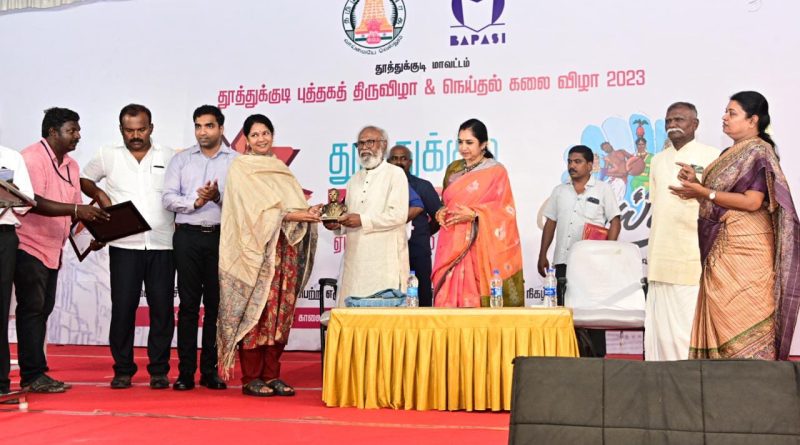 தூத்துக்குடி புத்தக திருவிழா : சிறப்புரையாற்றிய பேச்சாளர்களுக்கு நினைவு பரிசு கொடுத்து கவுரவித்த கனிமொழி எம்பி