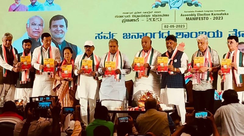 இந்நிலையில் இன்று கர்நாடக சட்டப்பேர்வை தேர்தலையொட்டி காங்கிரஸ் கட்சி தேர்தல் அறிக்கையை வெளியிட்டுள்ளது. காங்கிரஸ் தலைவர் மல்லிகார்ஜுன் கார்கே, சித்தராமையா, மாநில தலைவர் டிகே சிவக்குமார், தேர்தல் அறிக்கை குழு தலைவர் டாக்டர் பரமேஸ்வராஜி ஆகியோர் வெளியிட்டனர். பாஜகவுக்கு போட்டியாக ஏராளமான இலவச அறிவிப்புகள் தேர்தல் அறிக்கையில் இடம்பெற்றுள்ளன.