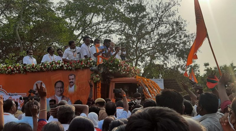 தமிழக சட்டமன்ற தேர்தலில் அதிமுக கூட்டணியில் பாஜகவுக்கு 20 தொகுதிகள் ஒதுக்கப்பட்டுள்ளது. இதனால் இந்த வேட்பாளர்களை ஆதரித்து பாஜக மூத்த தலைவர்கள் தேர்தல் பிரச்சாரத்தை செய்து வருகின்றனர்.