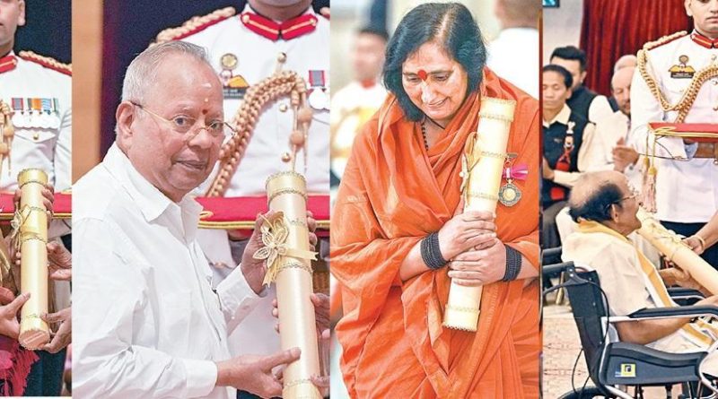 ஓய்வு பெற்ற நீதிபதி ஜெகதீஷ் சிங் கேகர், குமி​தினி லாகியா (மறைவு), சாரதா சின்ஹா (மறைவு) ஆகியோ​ருக்கு பத்ம விபூஷண் விருதுகளை குடியரசுத் தலை​வர் திர​வுபதி முர்மு வழங்​கி​னார். மறைந்த பத்ம விபூஷண் விரு​தாளர்​கள் சார்​பில் குடும்​பத்​தினர் விருதுகளை பெற்​றுக் கொண்​டனர்​.